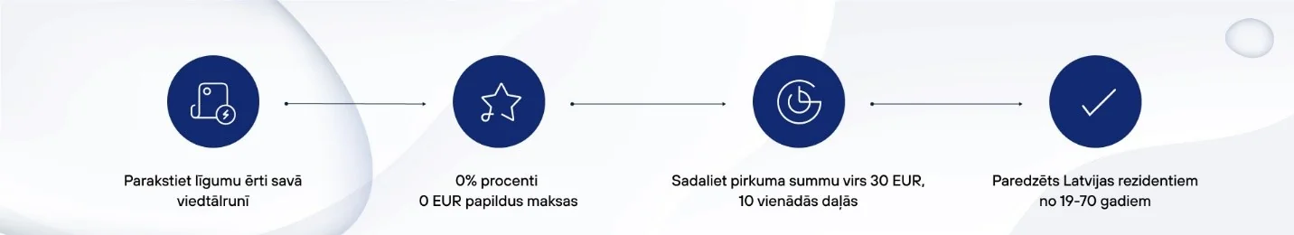 Ar ESTO 10 Jūs varat sadalīt pirkuma summu 10 vienādās daļās, maksājumus veicot 10 mēnešu laikā bez papildus maksas.